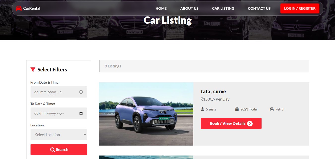 Online Car Rental Booking System is a modern and user-friendly car rental booking platform that allows customers to search, filter, and book vehicles by date, time, and location. With OTP-based login, real-time availability, and detailed invoicing, it's designed to deliver a seamless car rental experience. The platform includes both a customer-facing website and a powerful admin panel for full control over bookings, vehicles, and locations.